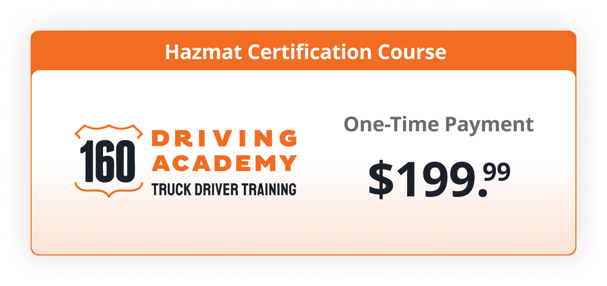 160 Driving Academy’s online Hazmat Certification Course makes it easy to meet both FMCSA and state-level requirements.