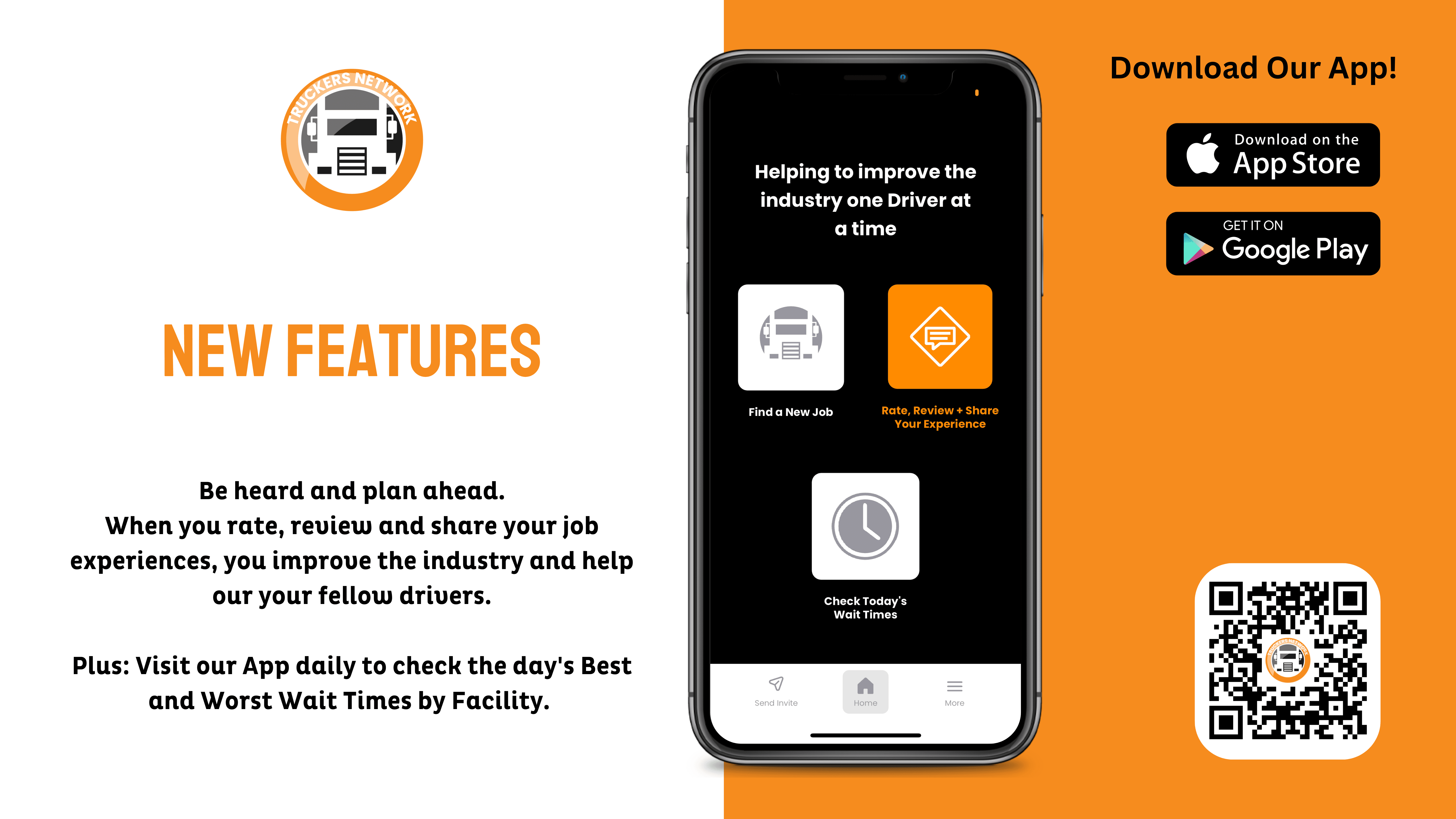 We are so excited to introduce our Newest Features on our Multi-Feature Truckers Network App; Check Today’s Wait Times and Rate, Review, and Share your experience.